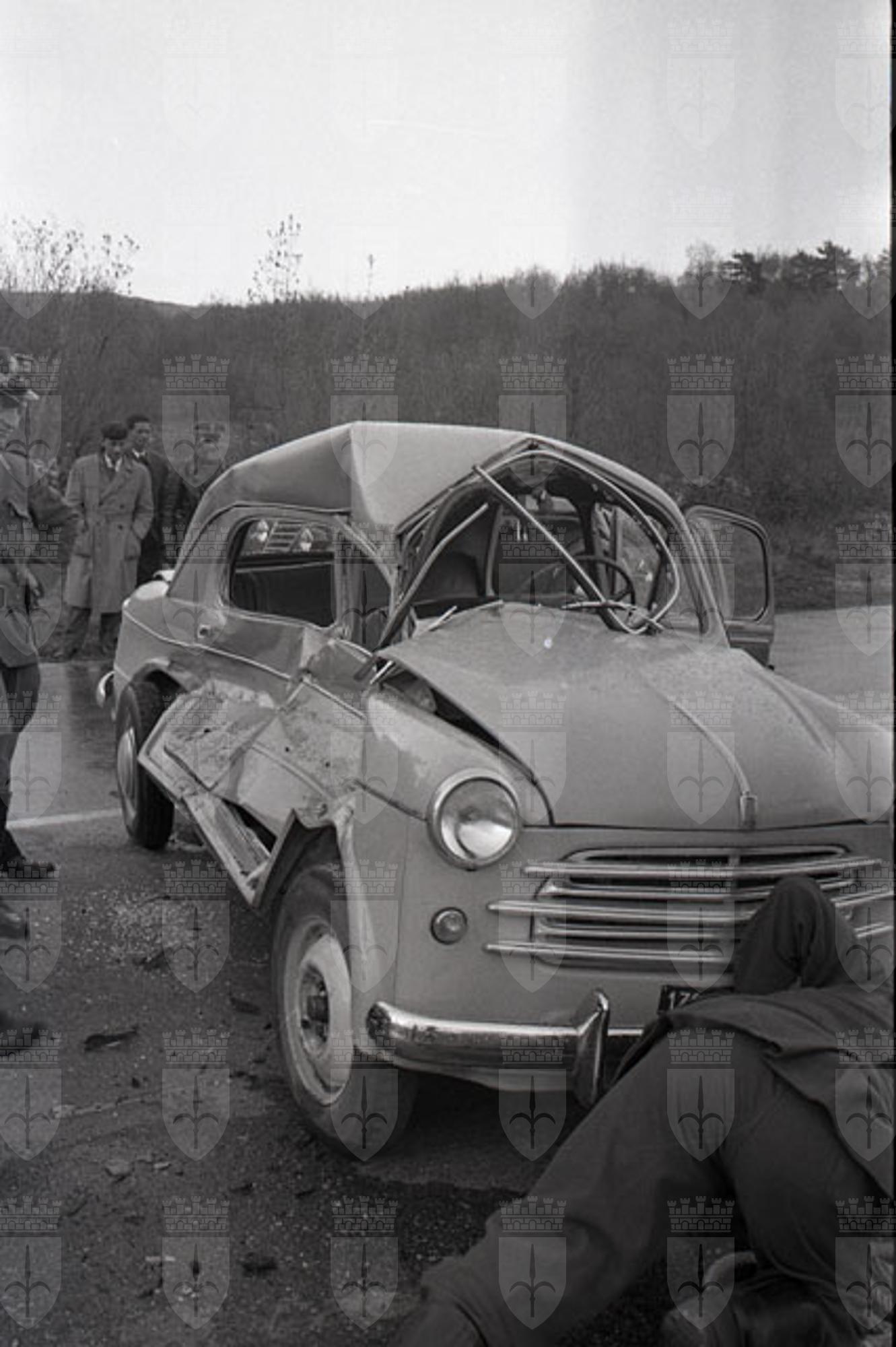 Bivio di Aurisina : Incidente mortale tra Fiat 1100 TS e autobotte AN