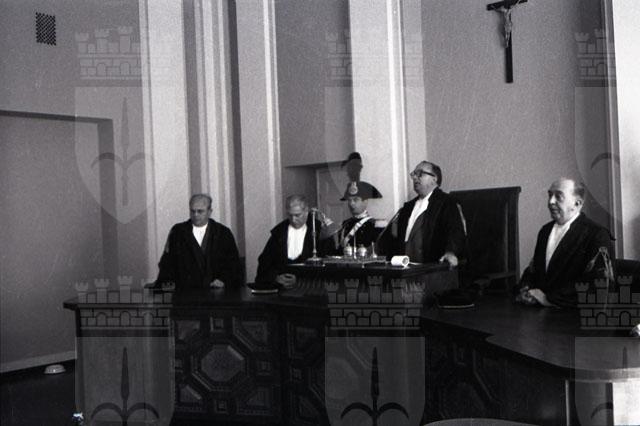 Viene allestita la camera ardente nell'aula magna del Tribunale per il primo presidente della Corte d'Appello di Trieste mancato dopo breve malattia. Nato a Cittaducale nel 1888, Alfonso Consalvo, entra nel 1912 in Magistratura dapprima come uditore nella Corte d'appello di Roma, poi vice pretore a Chieti e in seguito a Lanciano. Nominato Pretore in diverse sedi, nel 1923 ricopre l'ufficio di sostituto procuratore presso il tribunale di Lanciano e nel 1928 a Roma. Nel 1934 diventa consigliere di Corte d'Appello e poi sostituto procuratore generale alla corte di Appello della capitale oltre alla rappresentanza del Pubblico ministero presso il Tribunale dei minori. Distaccato dall'ottobre 1934 presso il Gabinetto del Guardasigilli, diventa Guardasigilli nel 1937. Nel 1942 è nominato Consigliere della Suprema Corte di Cassazione e nel 1955 passa alla Procura generale della Repubblica presso la Corte di Appello di Trieste, diventando nel 1954 Primo Presidente della Corte di Appello. (Notizie tratte da Il PIccolo, 9 maggio 1958)