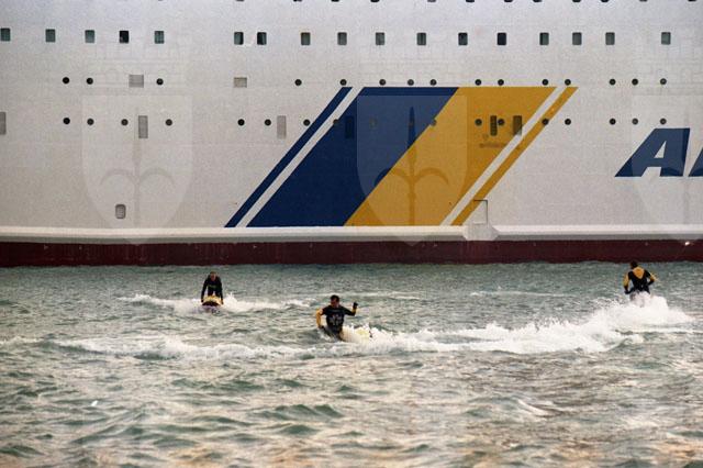 Gatiblers, motociclisti. Damiani, Drossi Fortuna, Rosato in salotto. Azzurro 1999. Rive di Trieste, stand bavisela, moto d'acqua. Marino Sterle, Andrea Tele4. Stazione marittima, molo con navi, conferenza sulla pace stazione marittima. Sottosegretario Toia.