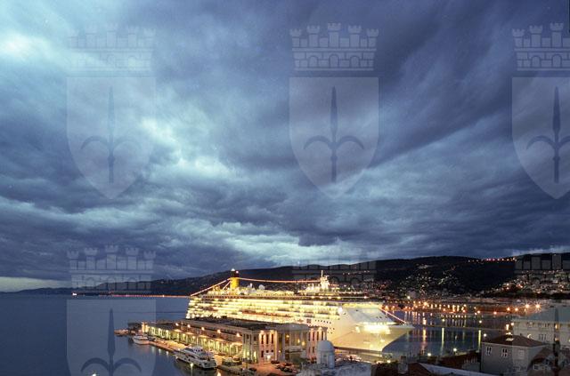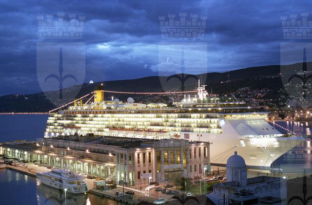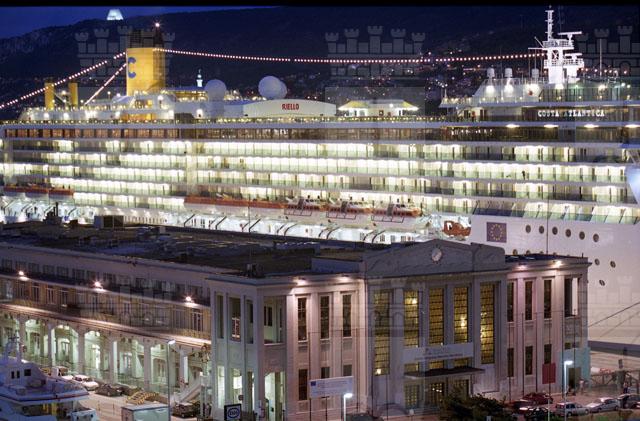 Stazione marittima, nave crociera, Costa Atlantica, rive di Trieste, notturni, pescheria, foto artistiche, turisti, piazza Unità notturni, rive.