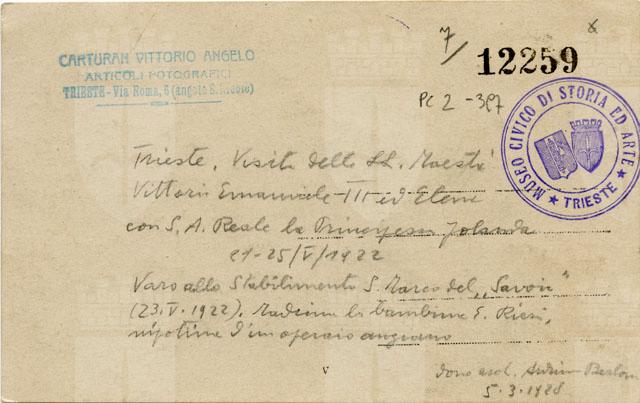 Vittorio Emanuele III la regina Elena e la principessa Iolanda al cantiere San Marco di Monfalcone durante il varo del piroscafo Conte Savoia.