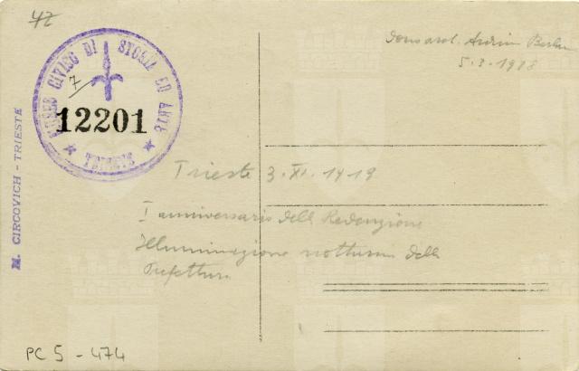 Illuminazione notturna del palazzo della Prefettura in occasione del I anniversario della redenzione di Trieste
