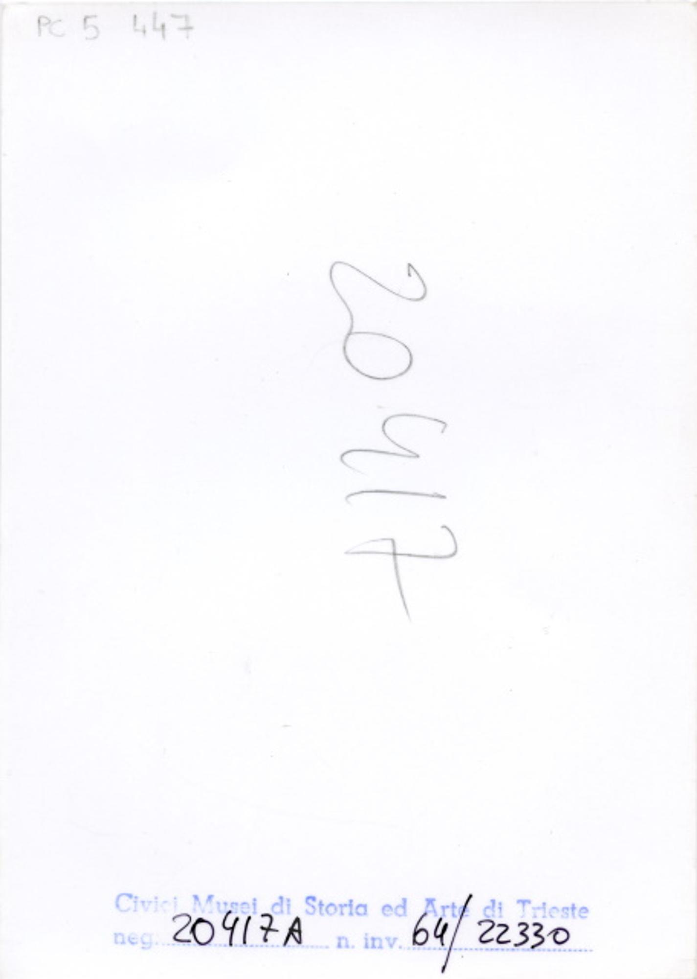 Bozzetto per un particolare del Faro della Vittoria di Trieste. Il progetto definitivo di Arduino Berlam, con sculture di Giovanni Mayer, fu approvato il 20 gennaio 1920. I lavori iniziarono nel febbraio 1923 e si conclusero il 24 maggio 1927, con una cerimonia di inaugurazione a cui prese parte l'allora Re d'Italia Vittorio Emanuele III.