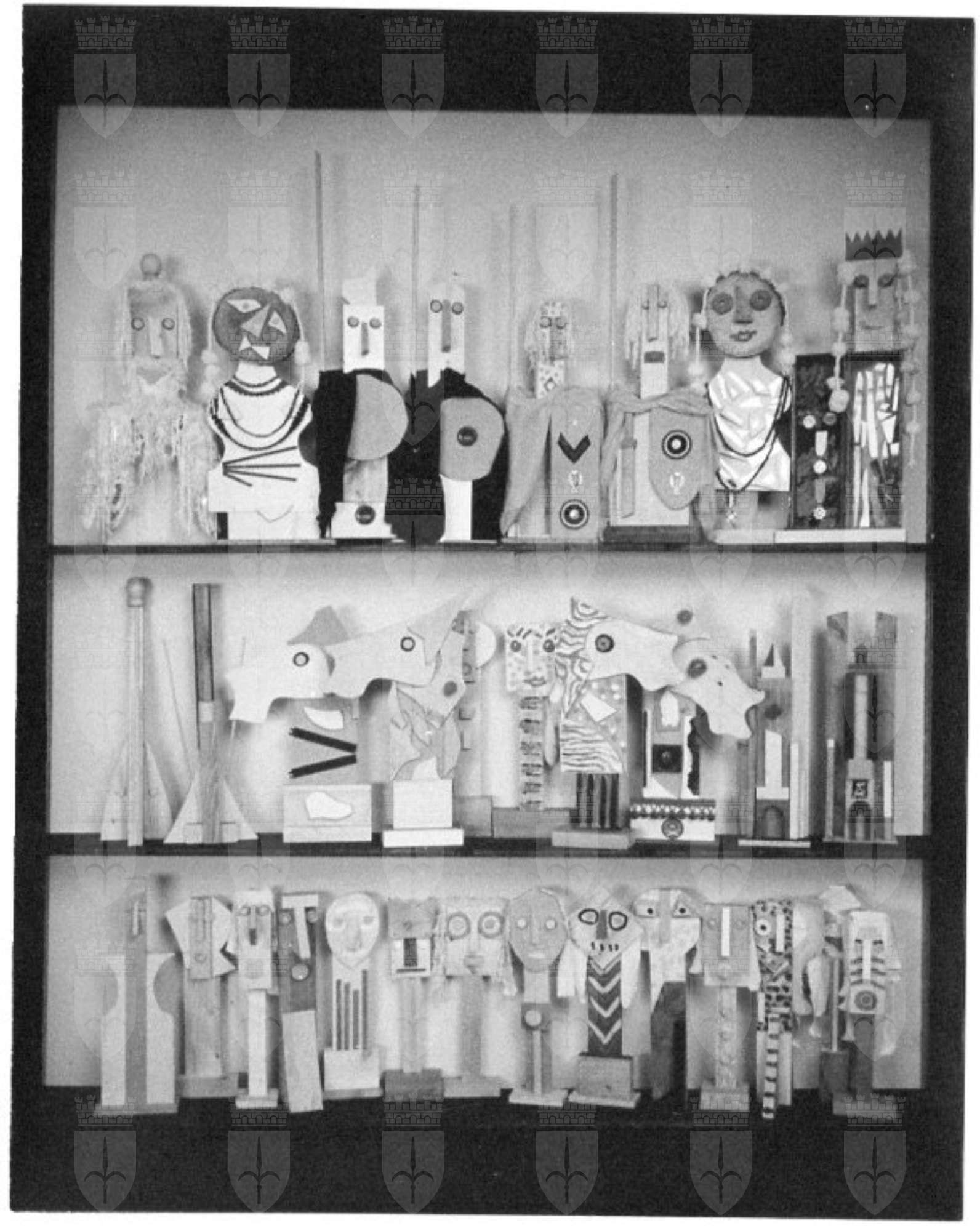 Gli Scacchi di Baj, realizzati nel 1988, sono un multiplo, ufficialmente con una tiratura di 30 esemplari (in realtà ne sono stati realizzati 15) + cinque contraddistinti da numeri romani da I a V. Dimensioni: altezza media dei pezzi cm 75; Scacchiera cm 272 x 272 composta da 64 caselle di cm 34 x 34; Pedana scacchiera cm 282 x 282 altezza cm 34.