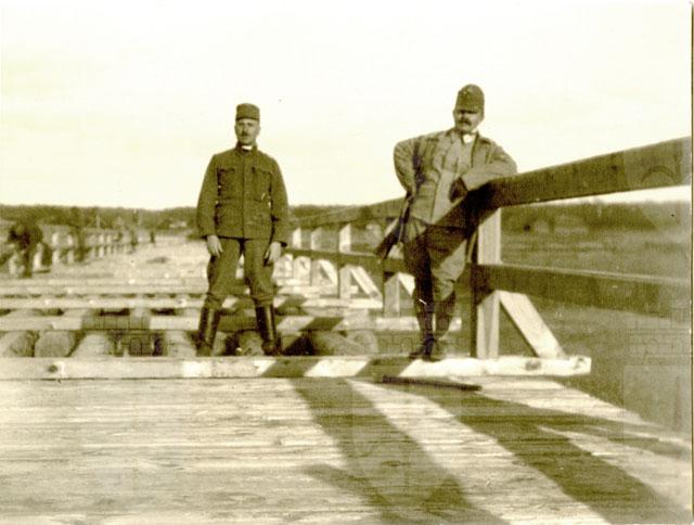 Il capitano Chiachich e il maggiore Müller sul ponte costruito dallo squadrone tecnico