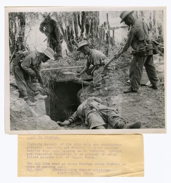 Controllo di una trincea giapponese da parte di militari Gurkha