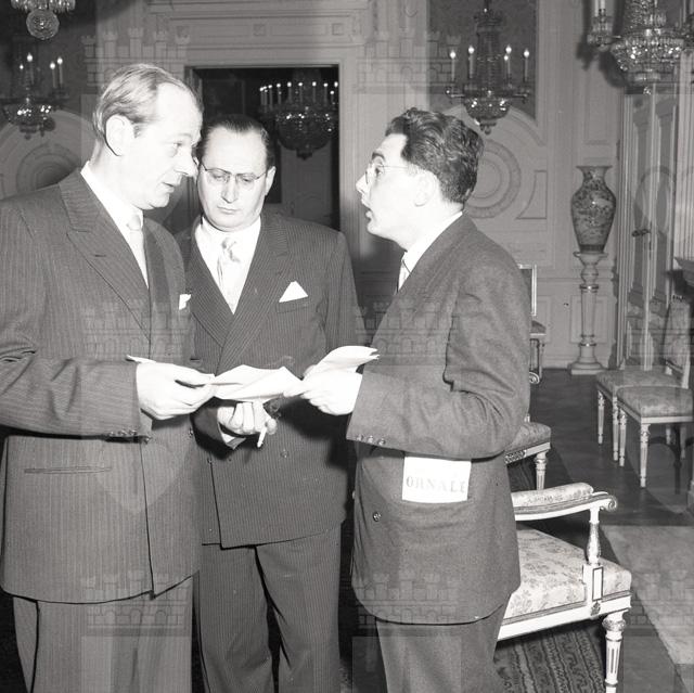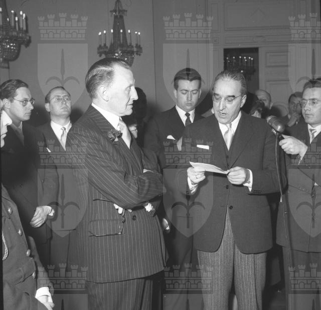 Con una solenne cerimonia in Prefettura, il maggior generale inglese sir Terence Airey si congeda dalle autorità politiche cittadine (da: Trieste 1900-1999: cent'anni di storia, v. 6, p. 184)