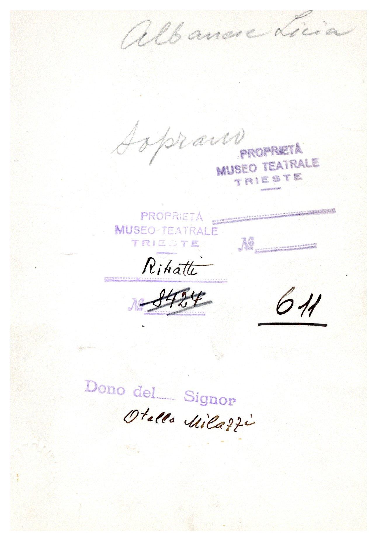 Soprano italiana, naturalizzata statunitense, fondò nel 1974 The Licia Albanese-Puccini Foundation, per l'assitenza ai giovani talenti artistici. Al Teatro Comunale di Trieste si esibisce nel 1938 in "Carmen" e Madama Butterfly"