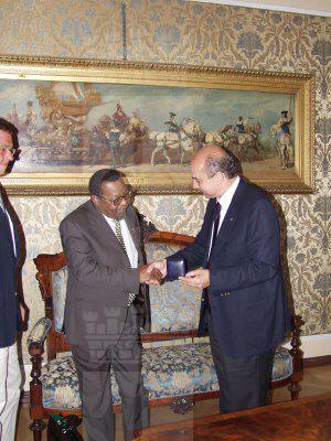 Il Sindaco Roberto Dipiazza con l'ambasciatore del Sud Africa Anthony Mongalo durante l'incontro nel salotto azzurro del Municipio.