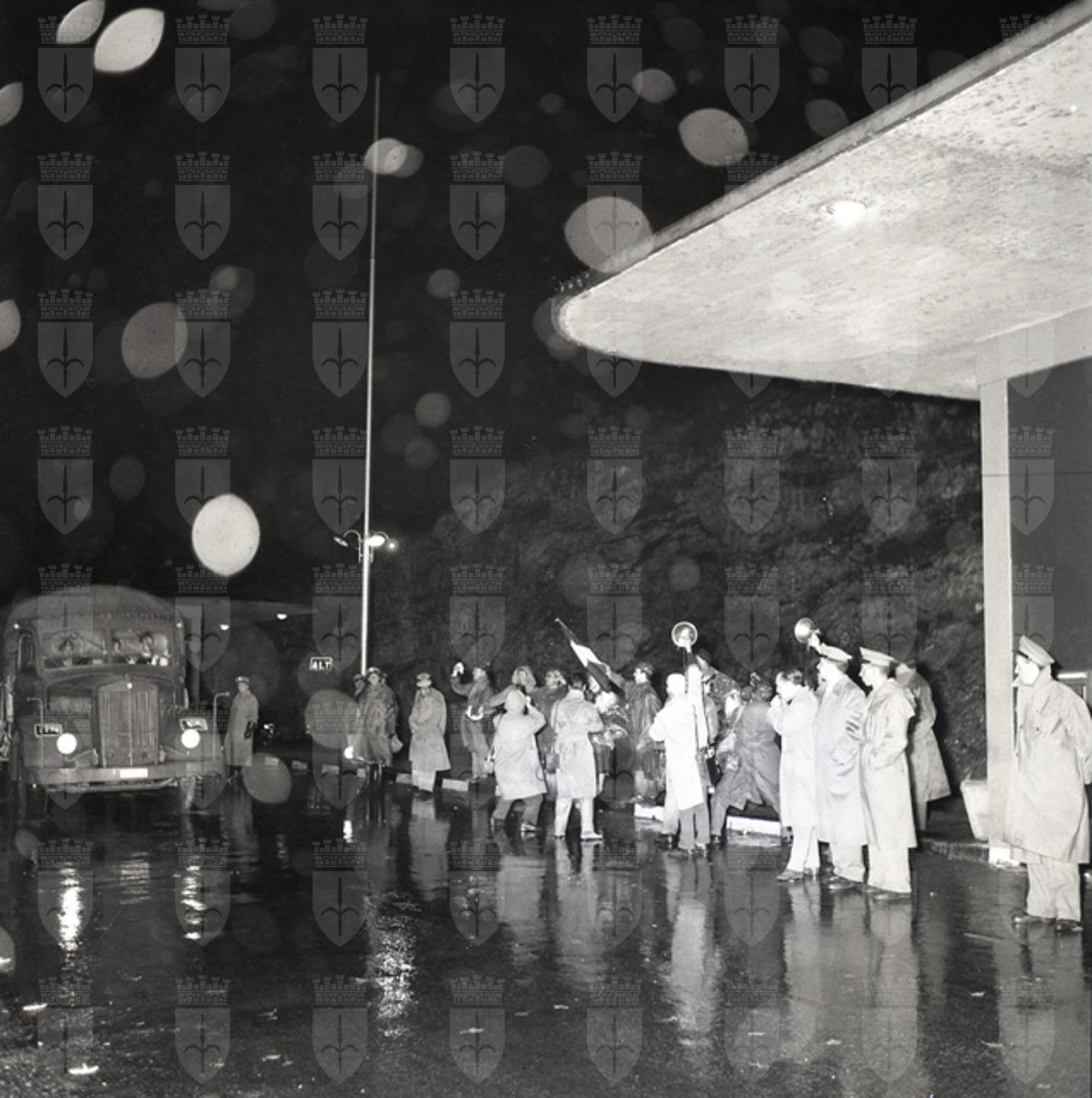 26 ottobre [1954] E' finalmente giunto il giorno tanto agognato: per tutta la notte moltissimi triestini hanno atteso, sotto la pioggia, l'arrivo dei nostri soldati nei pressi del posto di blocco di Duino, per essere i primi a dar loro il benvenuto e alfine, verso l'alba, sono apparsi i primi camion militari. Lungo tutta la costiera, fino a Barcola e poi, sempre piu', fino in citta' si sono avute manifestazioni di gioia: la lunga autocolonna e' avanzata con difficolta' tra due ali di folla festante ed entusiasta, che, ai piu' anziani, ha fatto ricordare le memorabili giornate del 1918 (da: Ugo Borsatti, Trieste 1954, fotografie dell'Archivio Storico "Foto Omnia" di Ugo Borsatti di proprieta' della Fondazione CRTrieste, Trieste, Lint, 2004, p. 68).