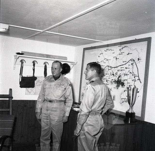 Il generale John A. Dabney, comandante delle truppe americane, predispone lo sgombero delle truppe statunitensi e viene immortalato davanti alla carta del Territorio. Il fotogramma UBNP000981_004 è pubblicato su Il Giornale di Trieste senza l'indicazione dell'autore.