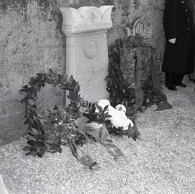 Scoprimento della lapide commemorativa in memoria di Antonio de' Giuliani posta sul sagrato della chiesa di Cattinara, a cura della casa editrice Lo Zibaldone di Anita Pittoni, della Societa di Minerva, sotto gli auspici del Comune. Sulla lapide medaglione raffigurante il de' Giuliani scolpito da Ruggero Rovan (da: La Bora, a. 2, n. 4, aprile 1978, p. 8-9)