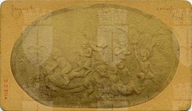Frammento di sarcofago decorato con una scena bacchica ambientata in un contesto bucolico. La raffigurazione, piuttosto concitata, è animata da paffuti amorini e da satiri in atteggiamento festoso.