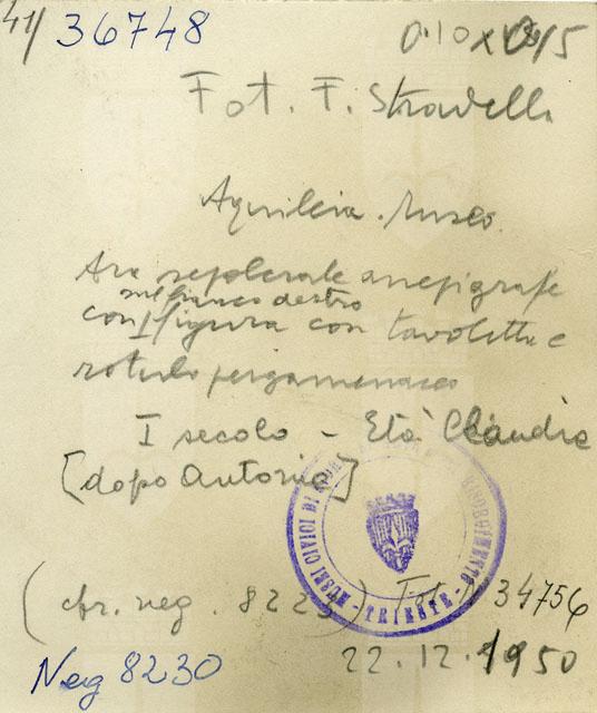 Lato destro dell'ara sepolcrale di Q. Cerrinius Cordus esposta nelle gallerie lapidarie del Museo Archeologico Nazionale di Aquileia. Il rilievo ritrae il defunto idealizzandone i tratti fisionomici e l'atteggiamento. L'uomo è raffigurato stante con un rotolo in mano che lo connota come persona colta. Sul lato opposto, il sinistro, vi è la defunta con un ventaglio in mano. L'ara è opera di una bottega locale attiva nella prima metà del I sec. d.C., con qualche attardamento nella seconda metà del medesimo secolo, vicina al mondo della vera arte per la maestria nella modellazione dei volumi, l'equilibrio dei drappeggi e la vena fresca dell'inventiva.