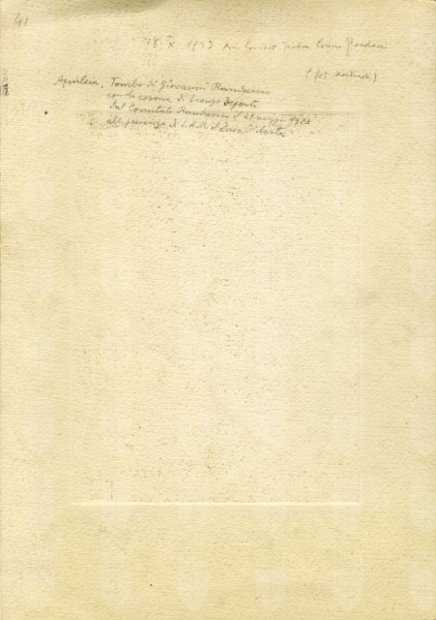 Tomba monumentale di Giovanni Randaccio (1884-1917) presso il Cimitero degli Eroi di Aquileia. Capitano di fanteria sul fronte carsico, G. Randaccio fu compagno e amico di Gabriele D'Annunzio, con il quale fronteggiò le battaglie dell'Isonzo. Morì durante la Decima battaglia dell'Isonzo nel tentativo di occupare le rovine del castello di Duino, posto oltre il corso del Timavo. Fu sepolto ad Aquileia e fu D'Annunzio stesso a idearne l'epitaffio "vitam dedit Timavo" inciso ai piedi del monumento, forse ispirandosi all'epigrafe romana scritta nel 129 a.C. per commemorare la vittoria sugli Istri, oggi conservata al Museo Archeologico Nazionale di Aquileia.