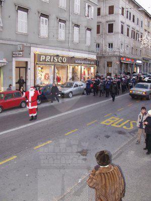 Fulvio Sluga in Piazza San Giacomo con Babbo Natale e la Banda dei Salesiani