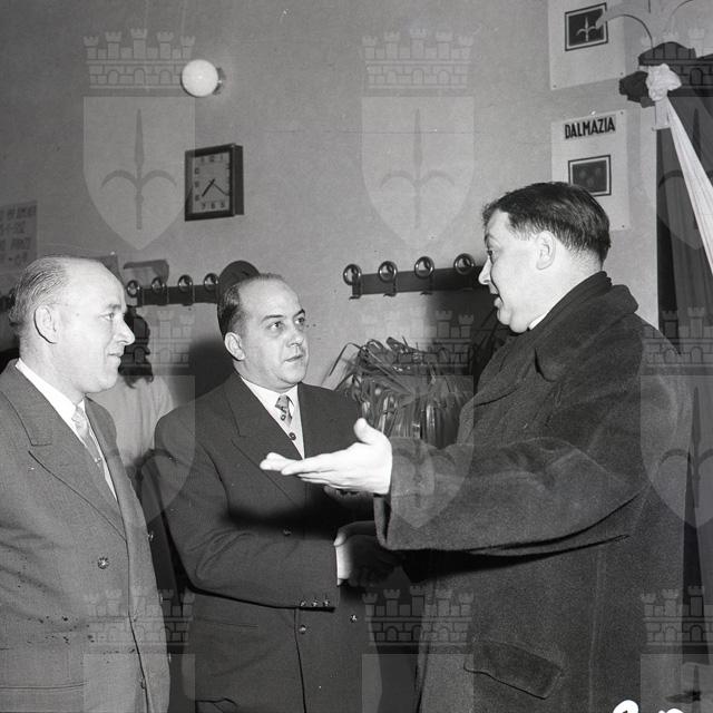 Oltre 700 bambini di eta inferiore ai 12 anni, profughi giuliano-dalmati, appartenenti alle classi piu indigenti, partecipano ad un pranzo natalizio offerto dal locale Ente organizzatore dell'Amministrazione per gli aiuti internazionali, nei locali della mensa comunale di via Gambini