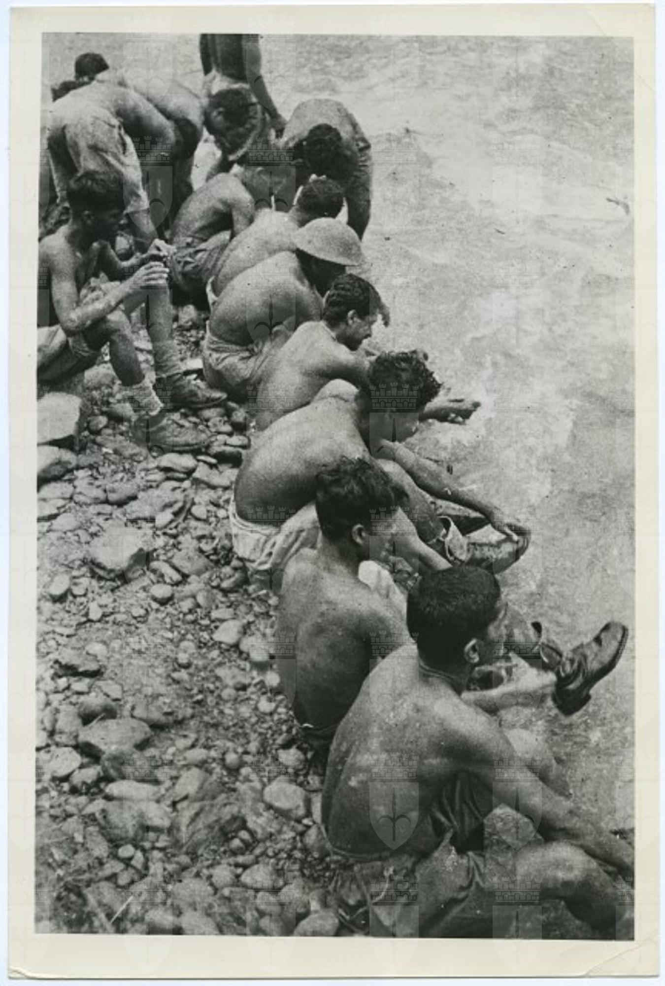 Soldati indiani lavano i loro stivali dopo esser stati nella jungla di Arakan.