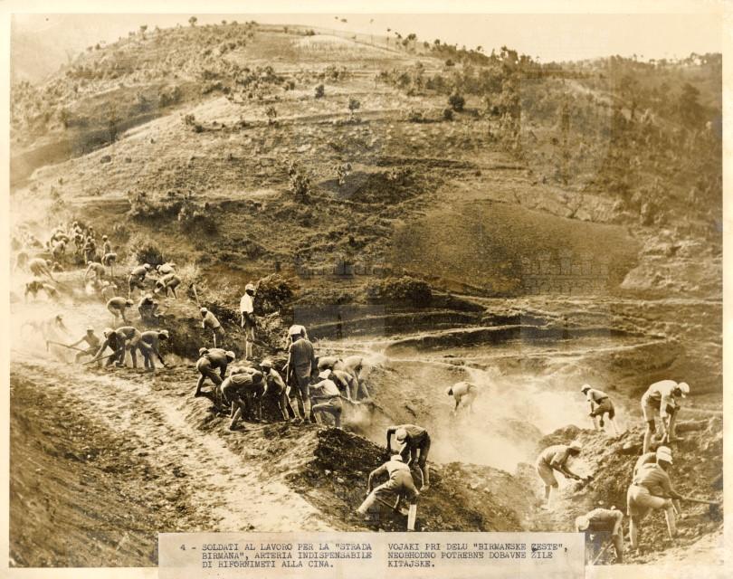 Working with great speed Chinese soldiers mine a section of the Burma Road