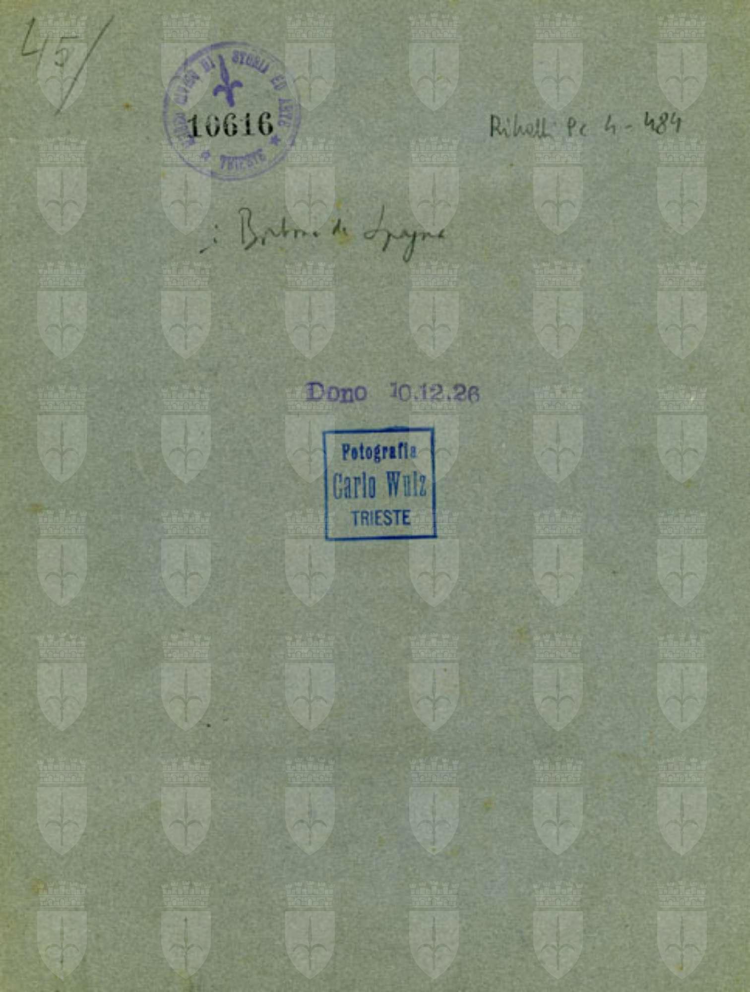 Proprietà Ente pubblico territoriale; Civici musei di Storia ed Arte; donazione; Wulz, Carlo; 1926/12/10