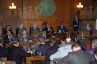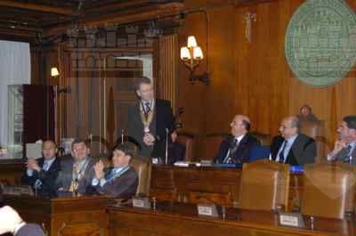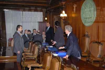 Il sindaco Roberto Dipiazza ed il Presidente del Consiglio comunale Bruno Sulli ed l'assessore comunale Maurizio Bucci con il presidente di Round Table Italia Maurizio Giudici e gli altri rappresentanti presenti al Meeting organizzato dalla Round Table Italiana in collaborazione con il Comune di Trieste, durante l'incontro avvenuto nella sala del Consiglio del Municipio.