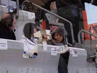Il sindaco Roberto Dipiazza con Susanna Huckstep e Peppe Quintale durante la diretta allo stadio Nereo Rocco.