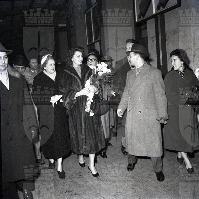 Giunta a Trieste con la sorella per partecipare a un ricevimento benefico dato in suo onore dalla Croce Rossa Italiana, Sophia Loren effettua un tour della città accompagnata anche dallo scultore Marcello Mascherini.