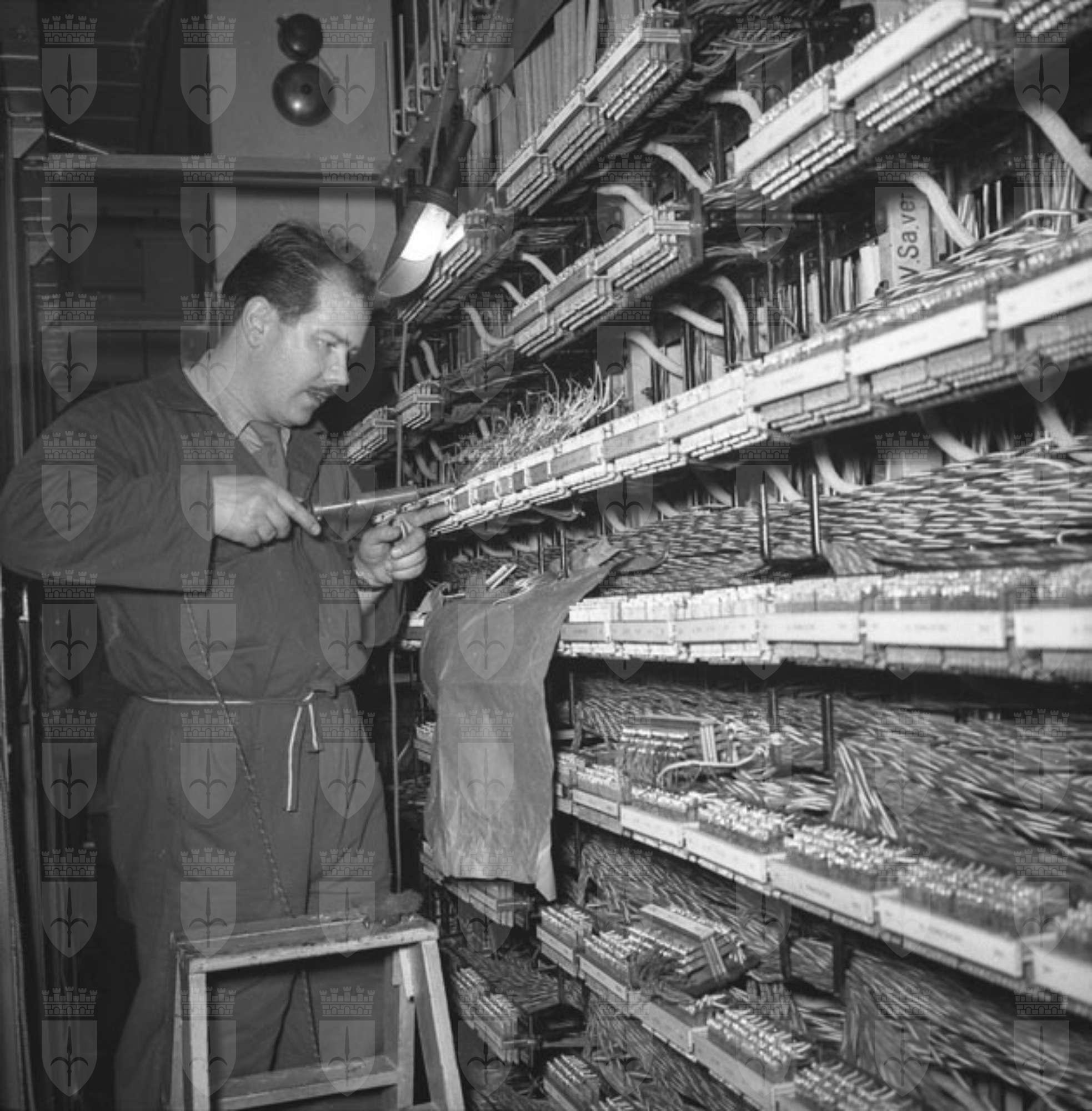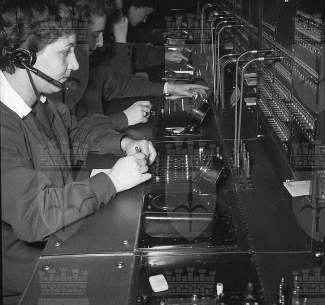 Telefoniste riprese durante l'attività lavorativa quotidiana e tecnici impegnati nell'allacciamento di nuove utenze.
