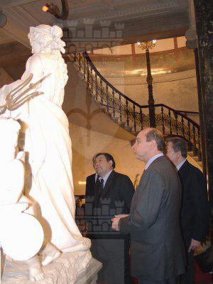 Il sindaco Roberto Dipiazza e l'ambasciatore cinese Chen Wen Dong al Museo Revoltella ammirano la scultura "Il taglio dell'istmo di Suez "ed il quadro "Paolo e Francesca"./p