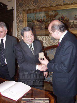 Il sindaco Roberto Dipiazza sindaco e l'assessore comunale Giorgio Rossi ed il presidente del Consiglio comunale Bruno Sulli incontrano l'ambasciatore cinese Chen Wen Dong, nel salotto azzurro del Municipio.