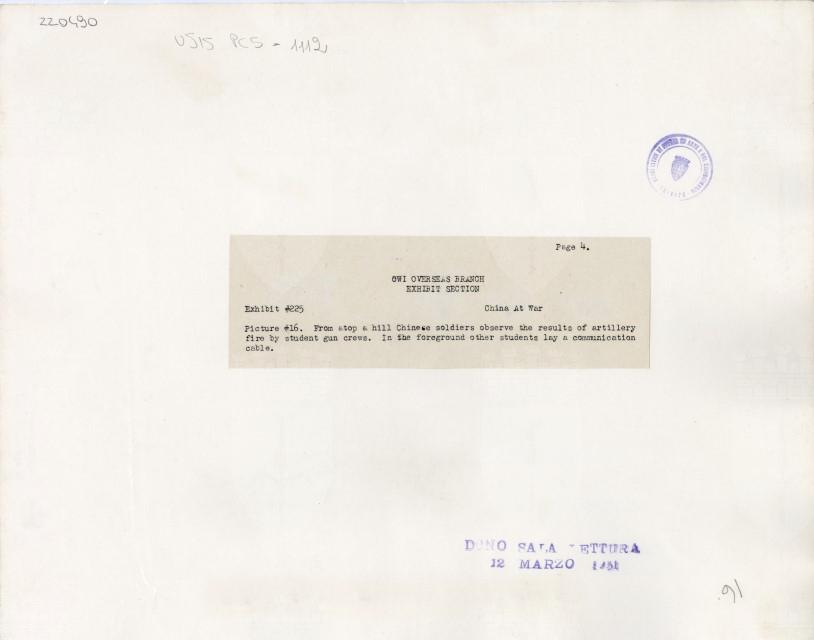 Gruppo di soldati cinesi osservano gli esiti dell'azione dell'Artiglieria dalla cima di una collina