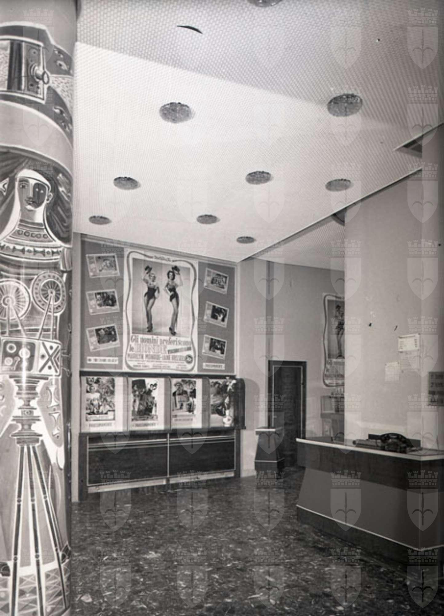 Interni della biglietteria e della sala proiezioni del cinema Cristallo.
