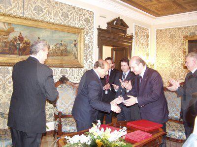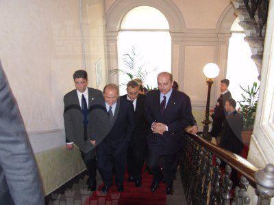 ll Presidente del Consiglio Silvio Berlusconi accompagnato dall'onorevole Roberto Antonione incontra il sindaco Roberto Dipiazza, il vicesindaco Renzo Codarin, gli assessori Roberto Menia, Maurizio Bucci, Giorgio Rossi, Fulvio Sluga