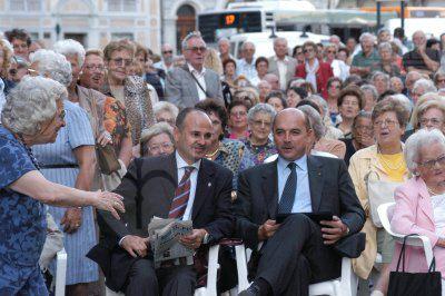 Roberto Dipiazza sindaco, Renzo Codarin e Giorgio Rossi assessori assistono assieme ad un pubblico entusiasta al concerto di chiusura del tour musicale Umberto Lupi canta Trieste