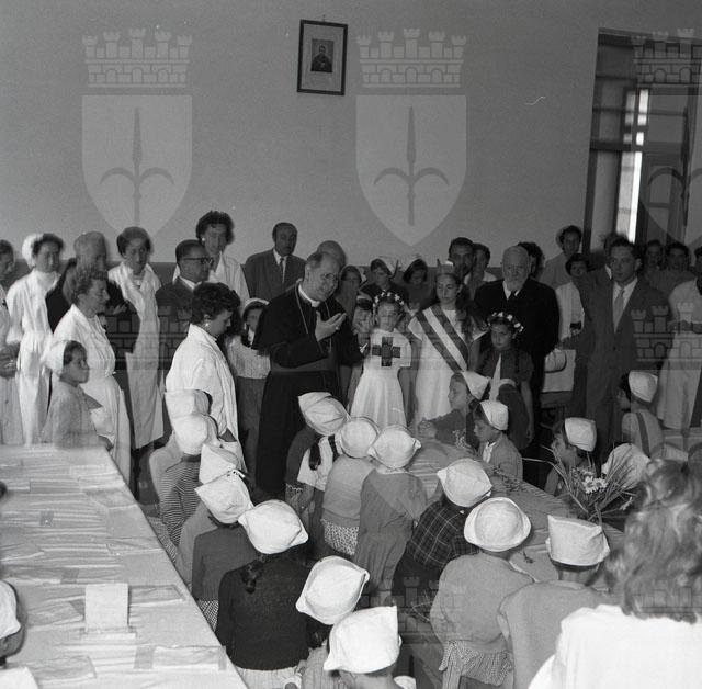 Visita del vescovo Santin alla colonia CRI di Tolmezzo