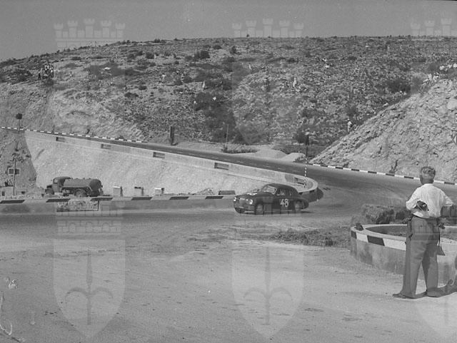 Nel dopoguerra c'è subito chi freme per poter tornare a correre e sostituire le jeep militari con lucenti bolidi, per salire all'Obelisco. Ed i dirigenti dell'A. C.Ts. lottano accanitamente ed alla fine riescono ad organizzare la 10° edizione, il 31 ottobre 1948. Gli iscritti sono 40 e 38 i classificati. Vince un "forestiero", Alberto Comirato da Treviso, davanti ad Alfredo Tinazzo ed Alberto Kechler. Seguono Cagni e Pelizzo. Blaschevich vince la cat. 500, Clochiatti la 1100 e Allazetta la 1500. Tra i nomi nuovi al via Vatta, Piazza, Cibin, Cavani. Durante la corsa, Antonio Maggini corre in compagnia del suo cane e si classifica 3° di categoria. La corsa passa alla storia per le proteste dell' avv. Poillucci che si vede privato di un eclatante secondo posto a causa un errore di cronometraggio. Bianca Piazza, 13° assoluta, vince tra le dame. (http://www.triesteopicinahistoric.com). Secondo le previsioni, la Trieste-Opicina è stata vinta dal trevigiano Alberto Comirato su Fiat 1100. Nonostante egli disponesse di una macchina Sport e non di un mezzo della categoria Corse, il tempo impiegato a compiere i 9 chilometri del percorso (6'3"8) rimane di appena 4" inferiore al primato assoluto della gara stabilito da Tazio Nuvolari nel 1930. Gli altri vincitori di categoria sono: Herbert Blaskevich su Fiat 500 per la categoria turismo fino a 750 cmc (tempo 9'13"4); Clocchiatti su Fiat 1100 per la classe fino a 1100 cmc (7'51"8); Anteo Allazetta su Fiat 1500 per la classe oltre 1100 cmc (7'22"); Alfredo Tinazzo su "Giannini Sport" (6'15"5) per la categoria sport fino a 750 cmc; Alberto Kechler su B.M.W. (6'18"), Carlo Franco su Alfa, Romeo (6'54"7) per la categoria sport con turbo compressori. La categoria Dame ha visto la vittoria della gentile signora Bianca Maria Piazza su Fiat 1100 (tempo 7'29")./pBrillante è stato il successo sportivo e spettacolare della manifestazione risuscitata nel dopoguerra per volonta' dei dirigenti del nostro Automobile Club e specialmente del presidente capitano Cosulich. Grazie all'impeccabile organizzazione, curata dalla Commissione all'uopo costituita, il pubblico che numerosissimo si era dato convegno alle partenze di via Fabio Severo., sulle curve, nella tribunetta allestita presso Cave Faccanoni, a Poggioreale e all'arrivo di Opicina ha potuto seguire comodamente e senza alcun rischio le fasi della competizione ed essere tempestivamente informato per mezzo di altoparlanti sui dettagli, tempi, orari di partenza e d'arrivo riguardanti la gara. Non si ha a lamentare il benche' minimo incidente. Lode dunque senza riserve agli ideatori e agli organizzatori. (da il Giornale di Trieste, 9 Novembre 1948). Circuito di Trieste - 4 settembre 1948? Quest'ultima immagine (fot. RO000001_018) con funzioni connettive tra le varie edizioni della gara in salita Trieste-Opicina, vittima talora di lunghe eclissi, è probabile appartenga a un reportage del "nostro" fotografo Adriano de Rota, dedicato al circuito di Trieste ( o circuito di San Giusto). Questa gara singolare che inglobava la parte in quota del tracciato classico, della corsa in salita, vide la vittoria della Ferrari di Franco Cornacchia. Nell'immagine, la sosta per assistenza ai pneumatici di una Cisitalia 202 "spider Nuvolari" il cui pilota non siamo stati in grado di identificare. (da Trieste-Opicina : sessant'anni di epopea / [immagini fotografiche di Adriano de Rota] ; a cura di Angelo Tito Anselmi con Gabriella De Benedetti, p.129).