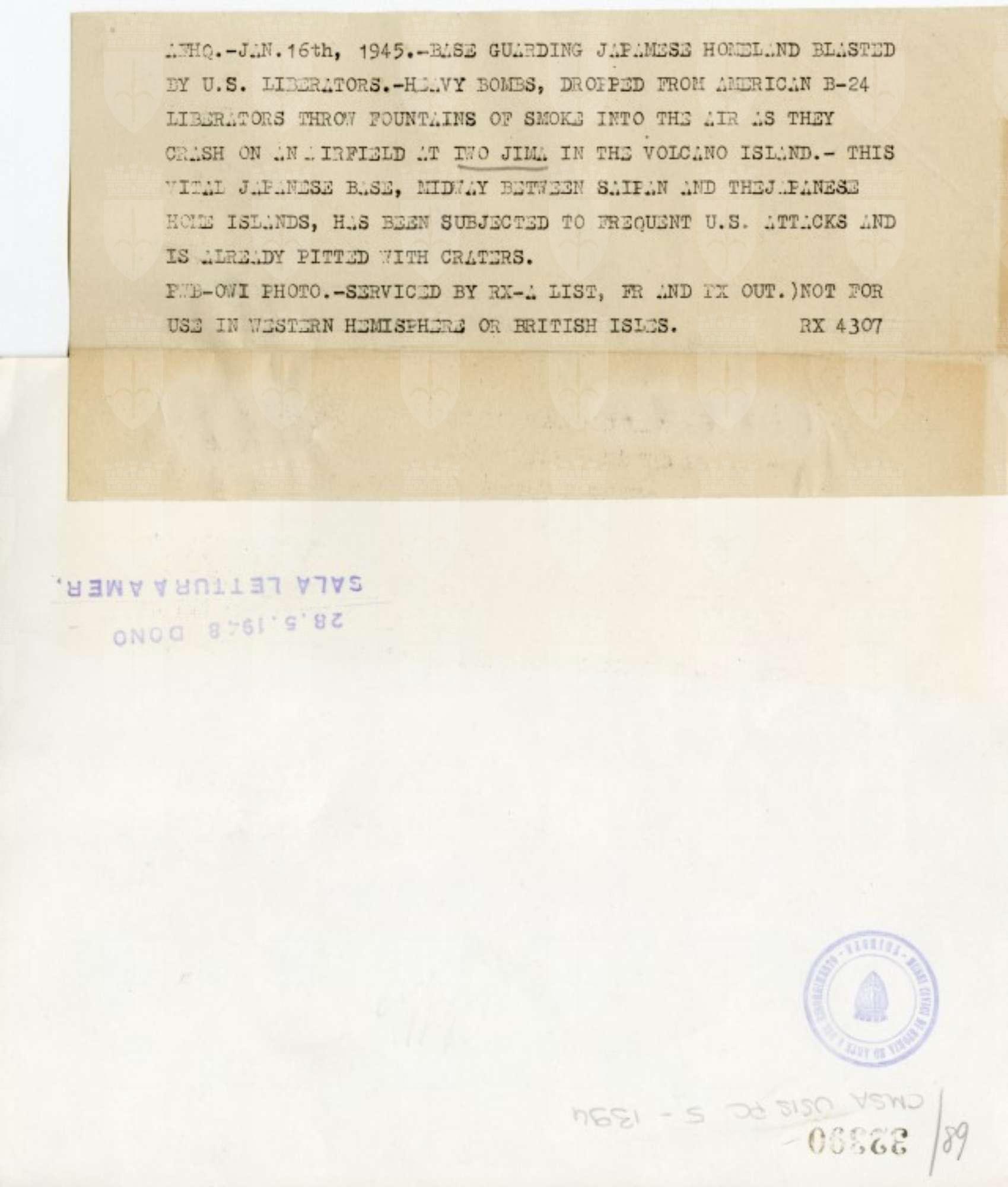 Base giapponese a Iwo Jima colpita dagli attacchi americani.