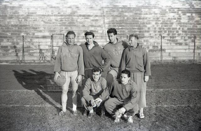 Il giornalista Dante di Ragogna, gia' capo dei servizi sportivi de Il Piccolo, intervista il ciclista Guido De Santi in allenamento con la U.S. Triestina calcio