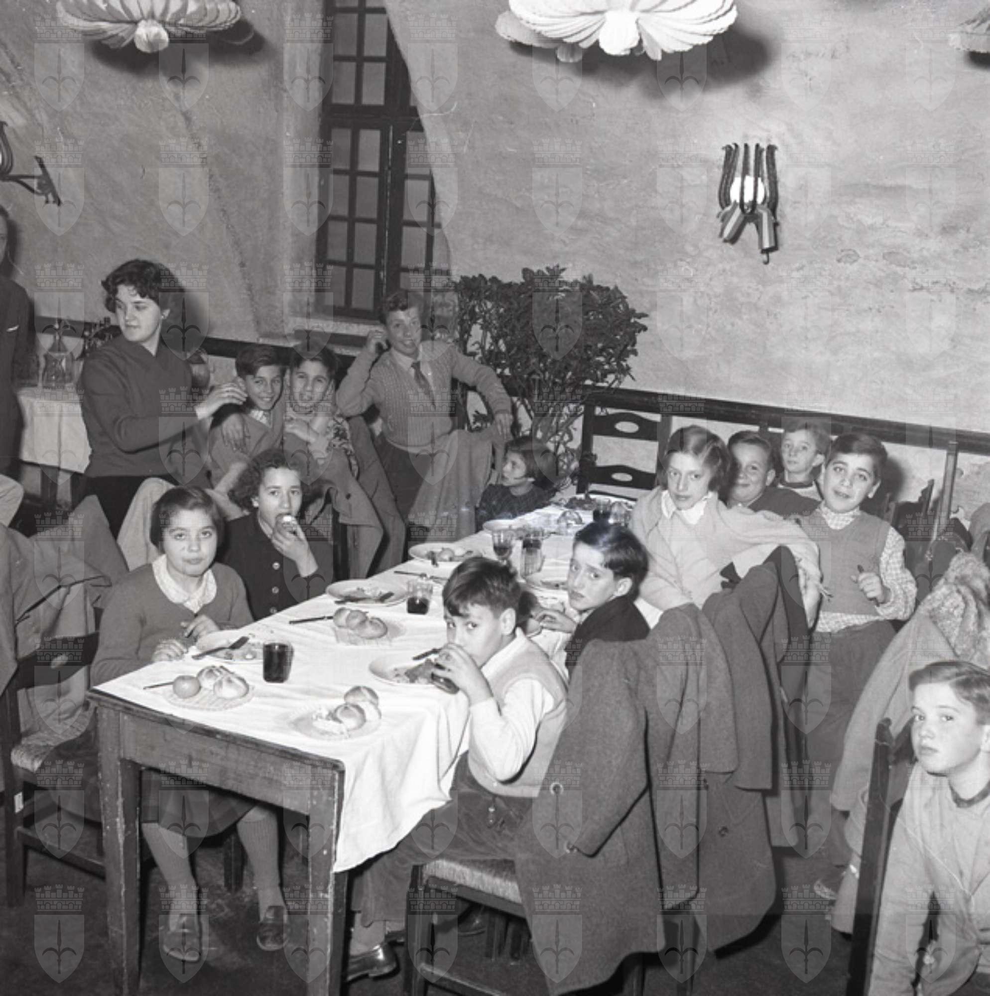 I bambini del rione di San Giusto sono ospitati alla Bottega del Vino dalla sezione di San Vito della Democrazia Cristiana.