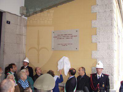 L'assessore comunale Renzo Codarin durante lo scoprimento della Targa alla memoria.