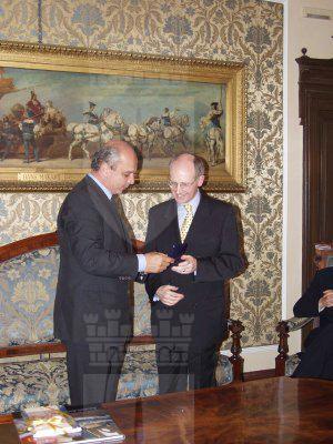 Il sindaco Roberto Dipiazza, l'assessore comunale Maurizio Bucci, il Console generale del Regno Unito Richard Northern, Roberto Galli addetto commerciale del Consolato ed il presidente del Consiglio Comunale Bruno Sulli, nel salotto azzurro del Municipio.