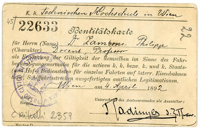 Carta d'identità di Filippo Zamboni, emessa il 4 aprile 1892