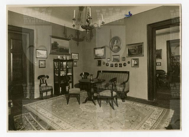 Mostra La casa dei nostri nonni : grande salone stile impero, camera da letto stile impero, anticamera, salottino di musica Biedermeier, salottino, salotto Biedermeier, camera da pranzo stile impero, salotto Biedermeier