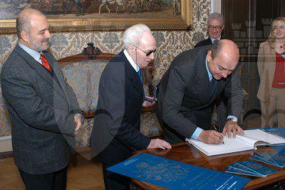Il sindaco Roberto Dipiazza, Pietro Covre ed il direttore dei Civici Musei di Storia ed Arte Adriano Dugulin. Presente anche l'assessore Paris Lippi