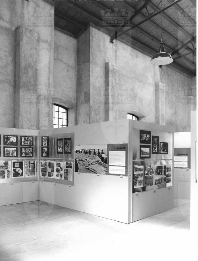 Serie di positivi della presentazione e allestimento "Spagna 1936 -39". La mostra presentata alla biennale di Venezia è stata poi trasferita alla Risiera di San Sabba, fonte: IL PICCOLO 1977/06/14 allegato al cartiglio dattiloscritto con titoli dei positivi.
