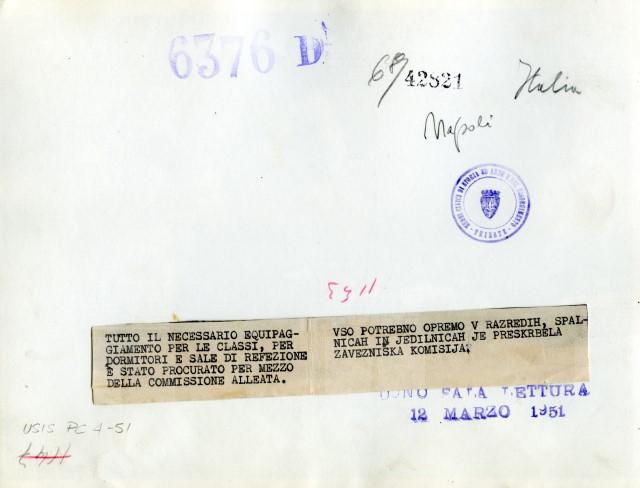 Proprietà Ente pubblico territoriale; Comune di Trieste; donazione; Sala di lettura americana; 1951/03/12