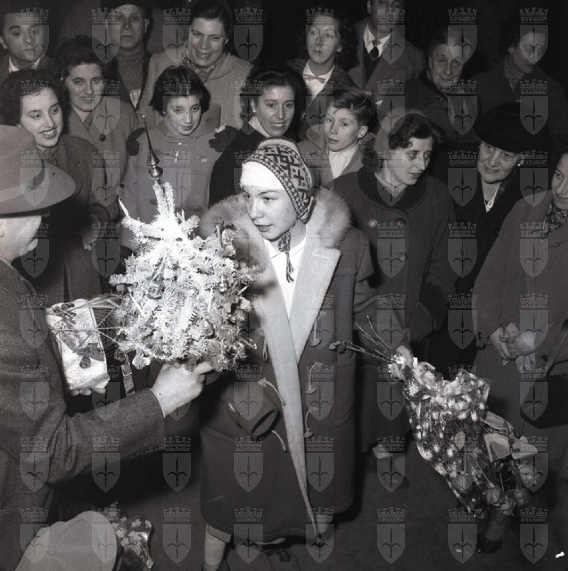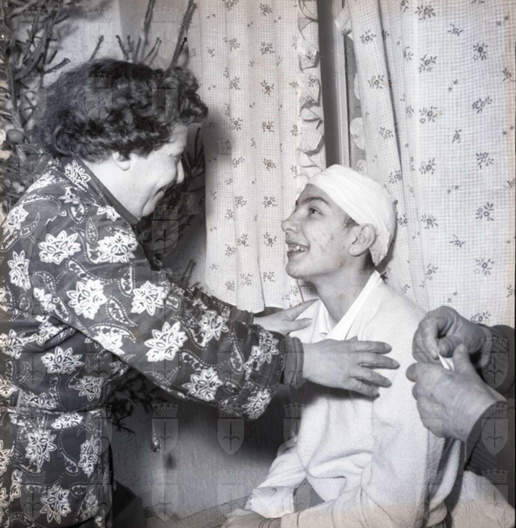 La giovane gradiscana Alessandra Fornasiero rientra da un viaggio a Stoccolma dove è stata operata dal professore Herbert Olivecrona. Con una sottoscrizione il Piccolo finanzia l'intervento che viene descritto nelle pagine del giornale. La documentazione fotografica utilizzata dal giornale è di Giornalfoto. Il servizio di Foto Omnia documenta anche il rientro a Gradisca.