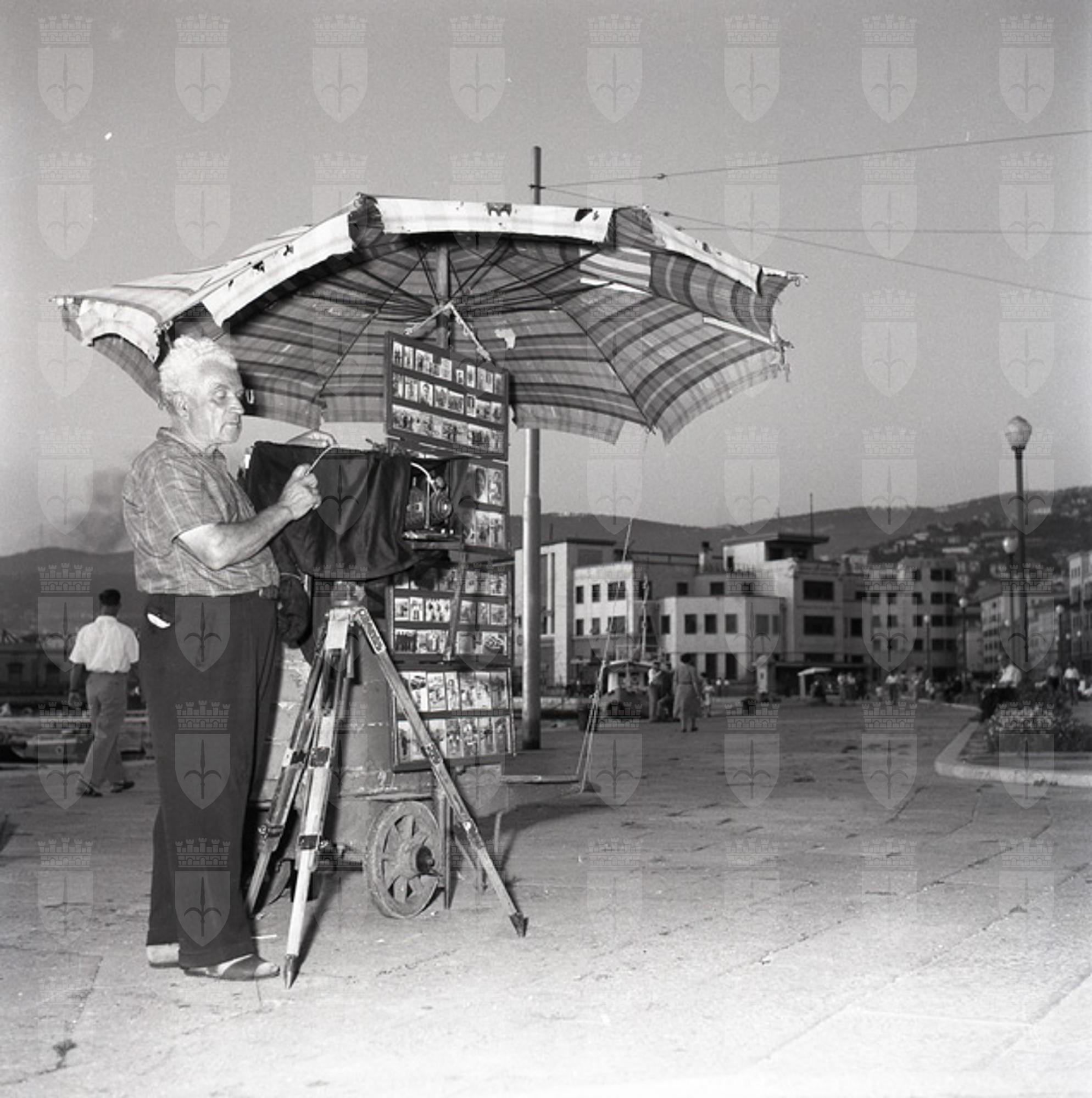 Beniamino Mauri è, negli anni Cinquanta, il capogruppo del Sindacato dei fotografi ambulanti. I fotografi cassettisti dispongono essenzialmente di una fotocamera all'interno della quale è possibile collocare il materiale sensibile da utilizzare, che generalmente consiste in carte postali alla gelatina-bromuro prodotte espressamente per questo genere di fotografia. Questa stessa fotocamera accoglie in vaschette speciali i bagni per i trattamenti. Si inizia ottenendo la fotografia matrice su una di queste carte postali, sulla quale l'immagine si presenterà in negativo. Questa immagine dovrà essere successivamente riprodotta con la medesima fotocamera, mediante un'altra carta postale, ottenendo così la copia positiva. Questo procedimento consente di ottenere il numero di copie desiderato. Tratto da Rafael Garriga, "Manuale del Minutero", Barcellona, maggio 1926