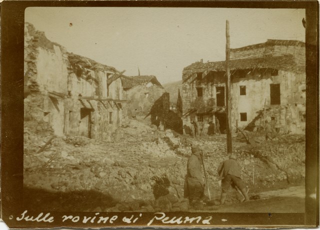 Durante la Prima Guerra Mondiale, la Piuma (località vicino a Gorizia) non fu raggiunta dai combattimenti italiani, ma la città di Gorizia fu liberata l'8 agosto 1916 dagli italiani, un evento che diede un forte impulso morale all'Italia e che è ricordato come la Sesta Battaglia dell'Isonzo. La conquista avvenne dopo un lungo assalto italiano all'avanzata, che vide la conquista di posizioni dominanti come il monte Sabotino