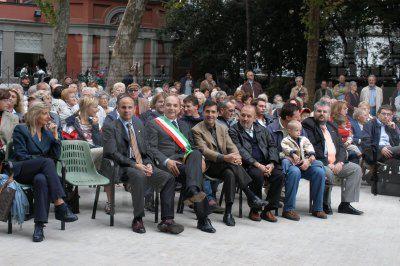 Roberto Dipiazza sindaco, gli assessori Renzo Codarin e Giorgio Rossi, I consiglieri Piero Camber, Francesco Gabrielli, Michele Lobianco, Andrea Vatta e Salvatore Porro, la Banda Refolo e Umberto Lupi all'inaugurazione